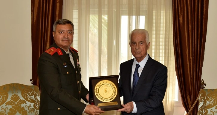 Tuğgeneral İlker Görgülü kabulde, 3'üncü Cumhurbaşkanı Eroğlu’na plaket de takdim etti.