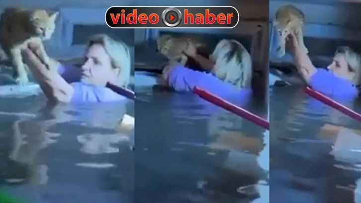 AFAD gönüllüsü Gülcan Demirbilek, belini geçen suyun içine girerek, kediyi bulunduğu yerden alıp, kurtardı. Boyuna kadar gelen suya giren Demirbilek, "Rab'bim sen yardım et" diyerek kediyi mahsur kaldığı yerden aldı.