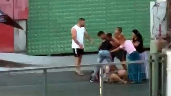 Otomobilden inen aralarında çocuk ve kadınların da bulunduğu grup bilinmeyen bir nedenle yakınları olduğu iddia edilen bir kadınla tartışmaya başladı. Tartışma kısa sürede kavgaya dönüştü. Çevredekiler tarafından cep telefonuyla kaydedilen olayda tartışmaların hedefindeki kadın şiddete uğrayınca 'Anne' diye bağırmaya başladı.