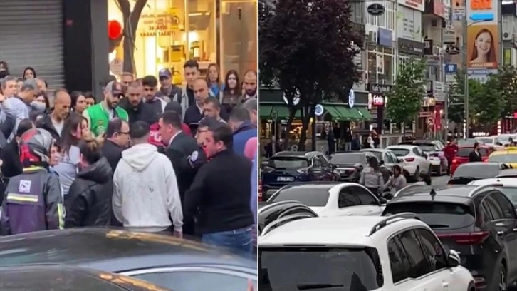 Alışveriş merkezinin güvenlik görevlileri ile hırsızlık şüphelileri arasındaki arbede, vatandaşların çektiği cep telefonu görüntülerine yansıdı.