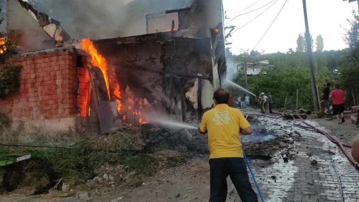 Yangın evin tamamını sararken, ihbar üzerine adrese itfaiye ve jandarma ekibi sevk edildi.