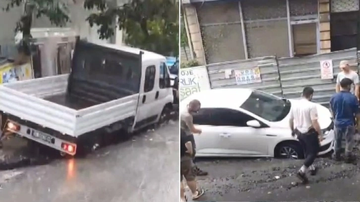 Açılan çukura o sıra park halinde olan kamyonet ve otomobil düştü. Çevredekilerin yardımıyla otomobil ve kamyonet çukurdan çıkartıldı.