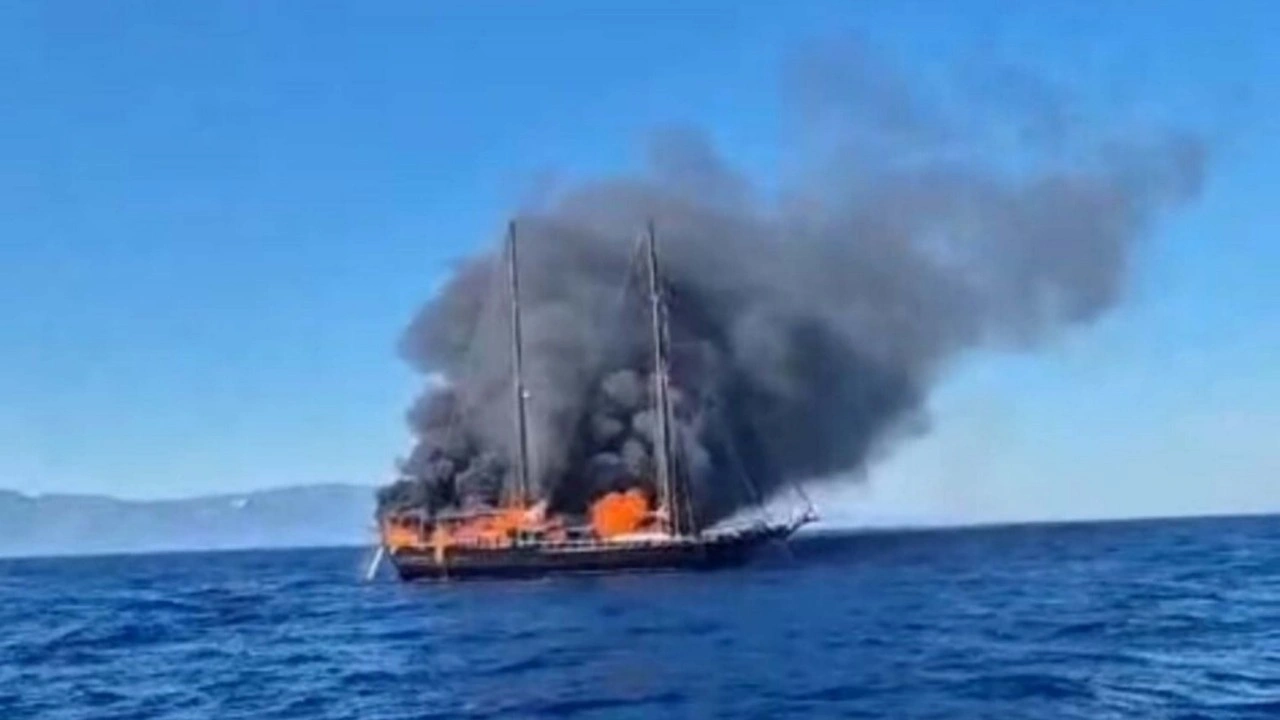 Datça Mersincik koyundan Bodrum Karaada Poyraz Koyu'na gitmek için denize açılan 'My Lover' isimli gulette, saat 08.00 sıralarında yangın çıktı.