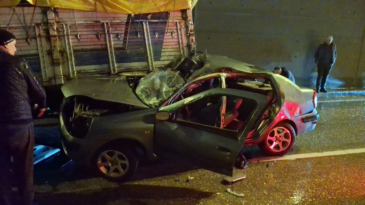 Cenk D.'nin yönetimindeki otomobil, pazar malzemeleri taşıyan kamyonun altına girip, bu şekilde bir süre sürüklendikten sonra durabildi.