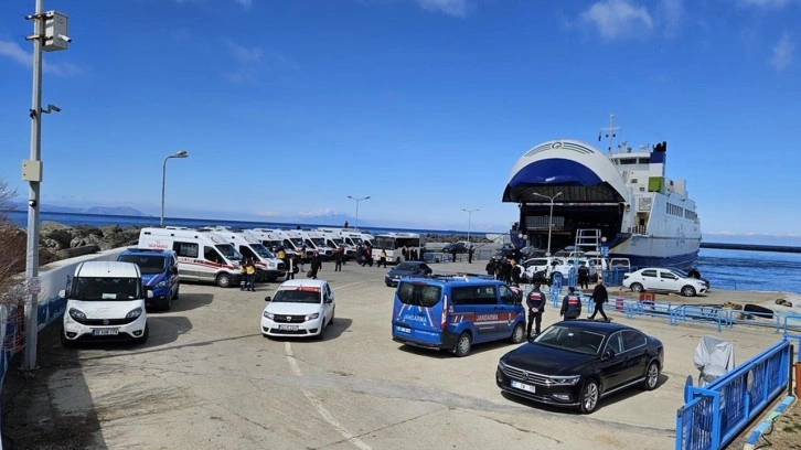 Kabatepe Limanı'nda da çok sayıda ambulans ve ekipler hazır bekletiliyor.