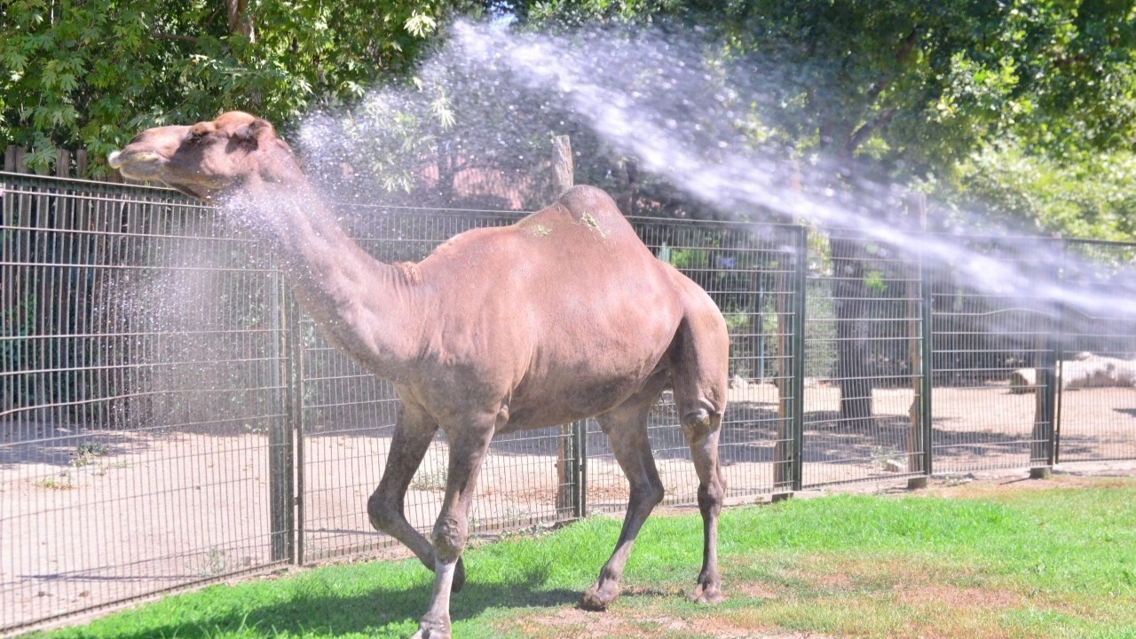 Yurt genelinde etkili olan çöl sıcakları Bursa’da etkisini gösterdi. Termometrelerin yer yer 45 dereceye ulaştığı Bursa’da, hava sıcaklığından hayvanat bahçesi sakinleri de etkilendi. 206 bin 600 metrekare alan üzerine kurulu olan ve 149 türden 1125 hayvana ev sahipliği yapan Bursa Hayvanat Bahçesi’nde görevliler, sıcaklardan bunalan hayvanları serinlemeleri için buzlu meyvelerle beslerken, sıcak iklime alışık olmalarına rağmen çöl sıcaklarından bunalan develer de hortumla su sıkılarak serinletiliyor.
