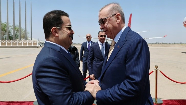 Cumhurbaşkanı Erdoğan'ı, Bağdat Uluslararası Havalimanı'nda Başbakan Muhammed Şiya es-Sudani ve diğer yetkililer resmi törenle karşıladı.