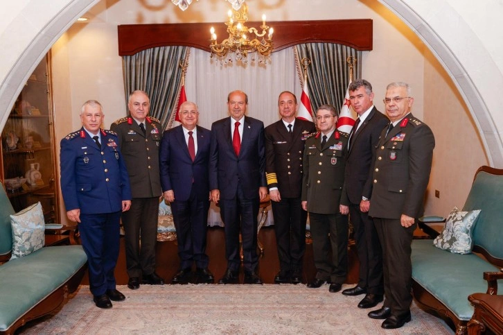 Cumhurbaşkanı Ersin Tatar bugün, Türkiye Cumhuriyeti Milli Savunma Bakanı Yaşar Güler ve heyetini kabul ederek görüştü.