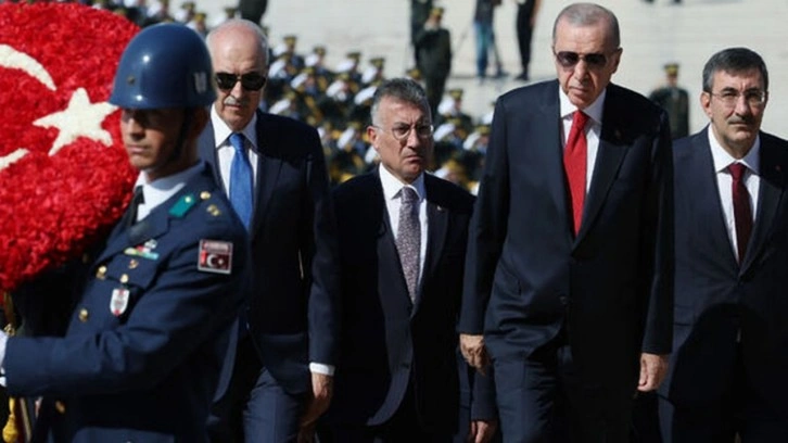 Cumhurbaşkanı Erdoğan, Gazi Mustafa Kemal Atatürk'ün mozolesine çelenk bıraktı. Saygı duruşu ve İstiklal Marşı okundu.