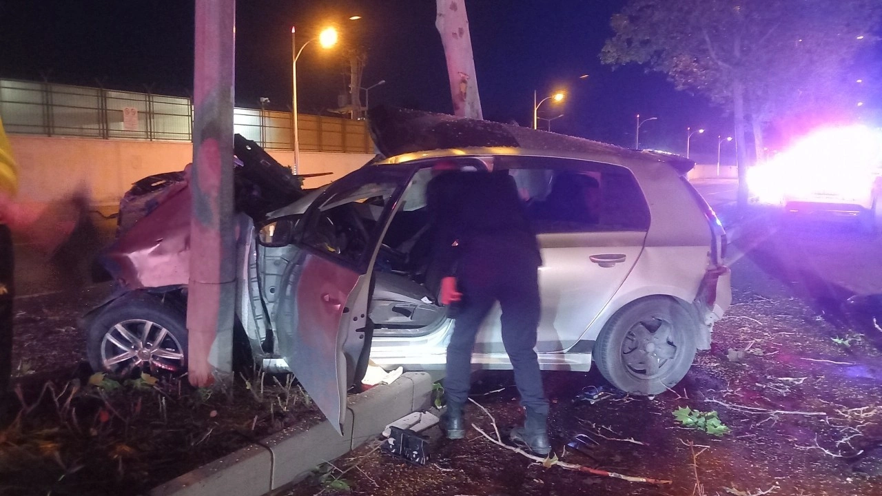 Ardından refüjdeki ağaca ve aydınlatma direğine çarpan otomobildeki 3 kişi yaralandı.