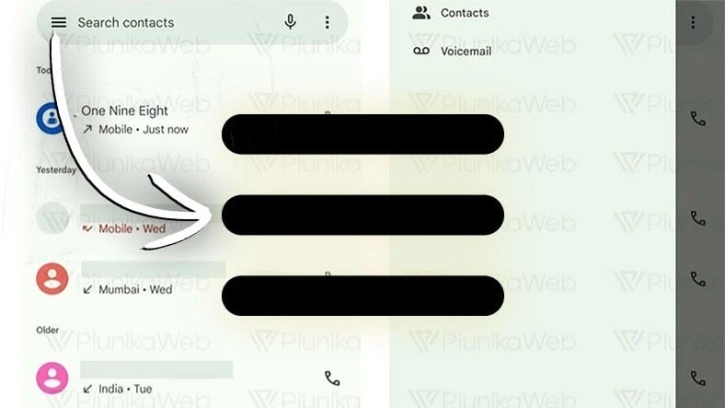 Güncel olarak Favoriler, Son Aramalar, Kişiler ve Voicemail gibi seçenekleri altta sunan ve bunlara dokunarak menüler arasında gezebildiğiniz uygulama, PiunikaWeb ve AssembleDebug tarafından bulunanlara göre söz konusu alt bölüme veda edecek. Onun yerine sol üstte “hamburger” diye adlandırılan 3 çizgi yoluyla bir yan panel açılacak.