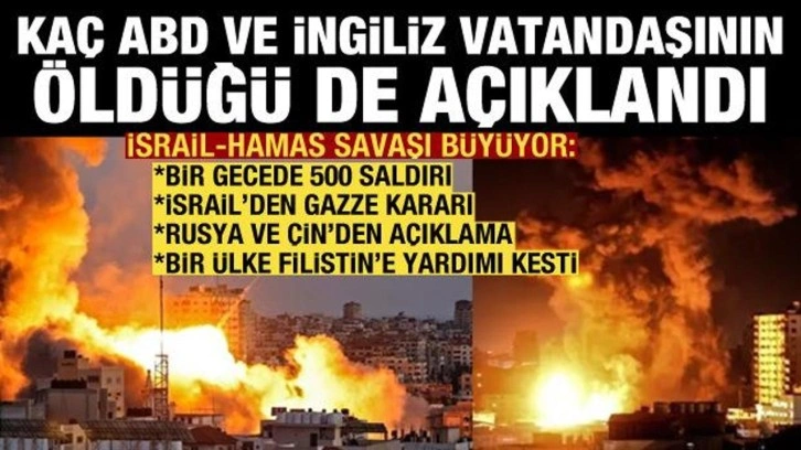 15.23: ABD, İsral'deki Hamas saldırılarında 9 vatandaşının hayatını kaybettiğini teyit etti. Ölü sayısının artabileceğini belirten Washington, onlarca ABD'linin Gazze'de Hamas tarafından rehin tutulduğu da doğruladı. Biden yönetimi, ölenler ve rehineler arasında toplam kaç Amerikalının bulunduğunu öğrenmek için çalışmalarını sürdürüyor. Öte yandan BBC'ye konuşan İngiliz hükümet yetkilisi de Hamas'ın İsrail'e saldırısı sonrasında 10'dan fazla İngiliz vatandaşının öldüğünden veya kaybolduğundan endişe ettiklerini söyledi.