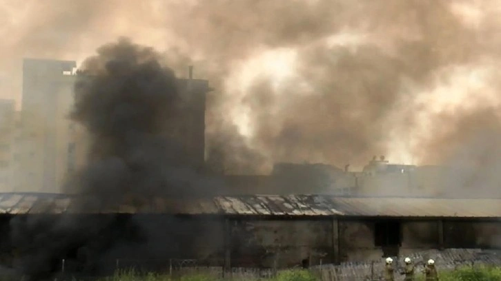Yangın nedeniyle imalathanede yoğun duman oluştu.