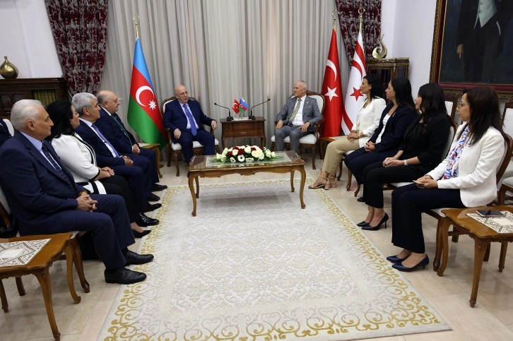 Meclis Şeref Salonu’nda gerçekleştirilen görüşmede Azerbaycan Diaspora Devlet Komitesi Başkan Yardımcısı Valeh Hacıyev, Azerbaycan-Türkiye Parlamentolararası Dostluk Grubu Başkanı Ehliman Emiraslanov, Azerbaycan-KKTC Parlamentolararası Dostluk Grubu Üyesi Hikmet Mammadov, Azerbaycan-Türkiye Parlamentolararası Dostluk Grubu Üyesi Fatma Yıldırım, Azerbaycan-KKTC Parlamentolararası Dostluk Grubu Üyesi Musa Quliyev ile KKTC Cumhuriyet Meclisi Başkan Yardımcısı Fazilet Özdenefe ve Meclis Başkanlık Divanı Üyesi Milletvekili Şifa Çolakoğlu yer aldı.