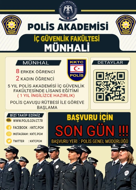 Türkiye Cumhuriyeti Polis Akademisi Başkanlığı İç Güvenlik Fakültesi 2025-2026 öğretim yılı lisans eğitimine KKTC'den başvurular için bugün son gün…