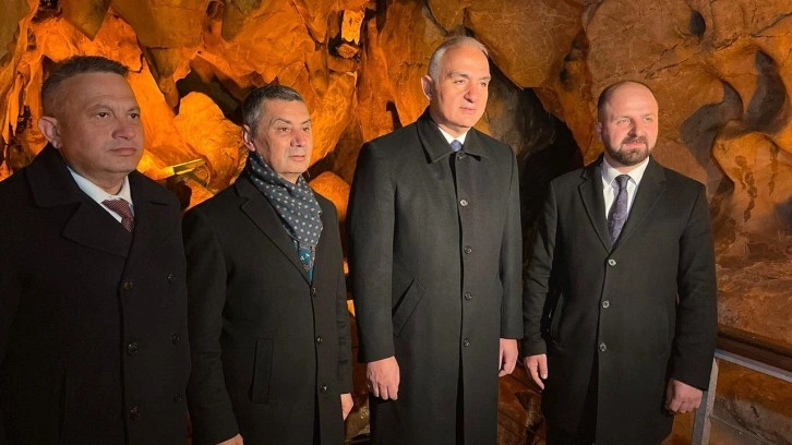 Kültür ve Turizm Bakanı Mehmet Nuri Ersoy, Gölbaşı Belediye Başkanı Ramazan Şimşek ile birlikte Ankara'nın Gölbaşı ilçesindeki Tulumtaş Mağarası'nı ziyaret etti.