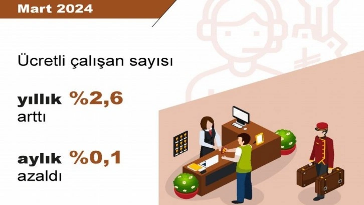 TÜİK, Mart 2024 dönemine ilişkin ücretli çalışan istatistiklerini açıkladı. Buna göre; sanayi, inşaat ve ticaret-hizmet sektörleri toplamında ücretli çalışan sayısı, 2024 yılı Mart ayında yıllık yüzde 2,6 arttı.