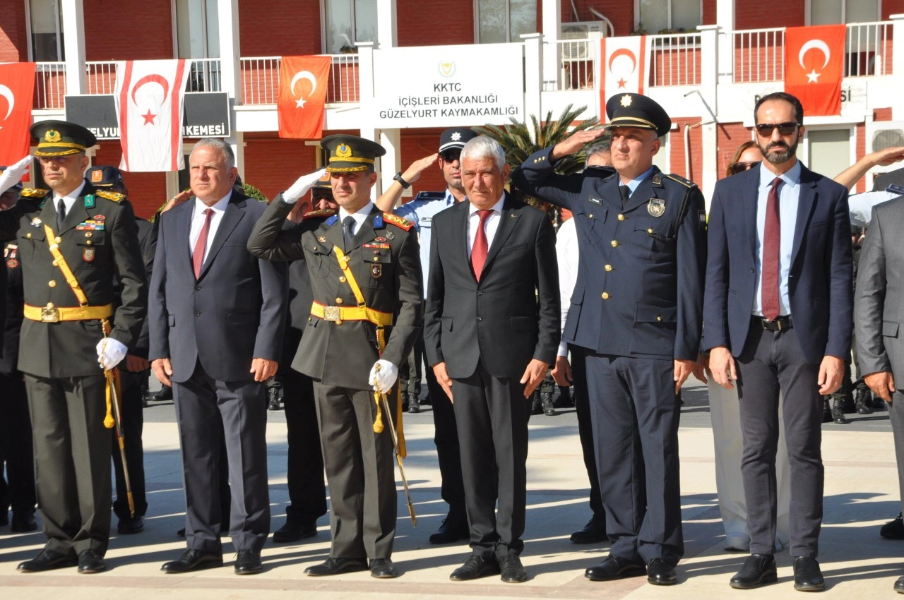 Güzelyurt Belediyesinden verilen bilgiye göre, Güzelyurt Atatürk Anıtı önünde düzenlenen törende, protokol sırasına göre çelenkler anıta kondu, şehitler için saygı duruşu ardından İstiklal Marşı eşliğinde bayraklar göndere çekildi.