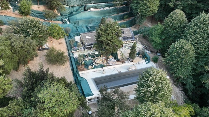 Meskenin çevresindeki spor salonu, misafirhane, mekanik odası, kış bahçesi ve güvenlik kulübesi yıkıldı.
