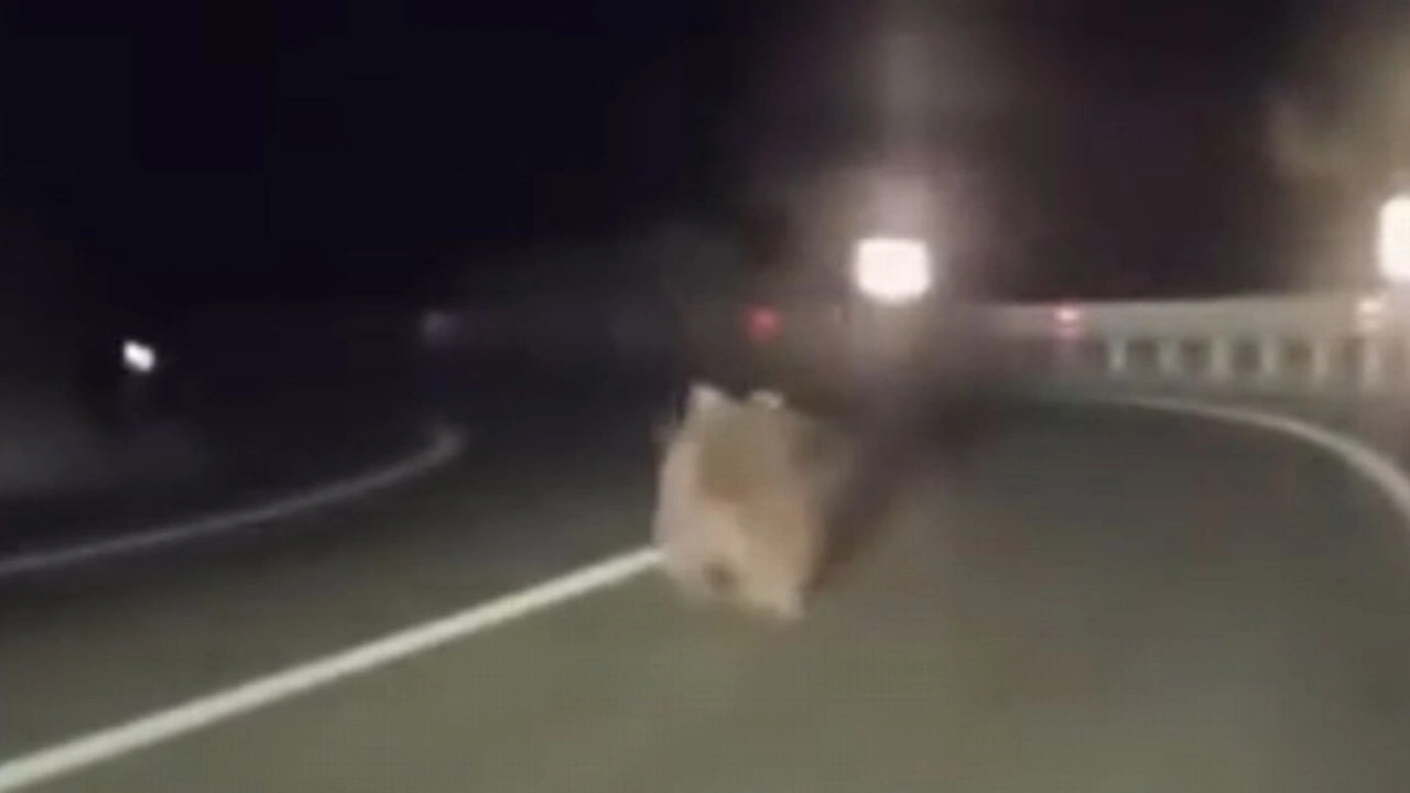 Bursa'nın Nilüfer ilçesi Gümüştepe Mahallesi mevkisinde dün gece saatlerinde 2 arkadaş otomobille gezerken, aniden yola ayı çıktı.