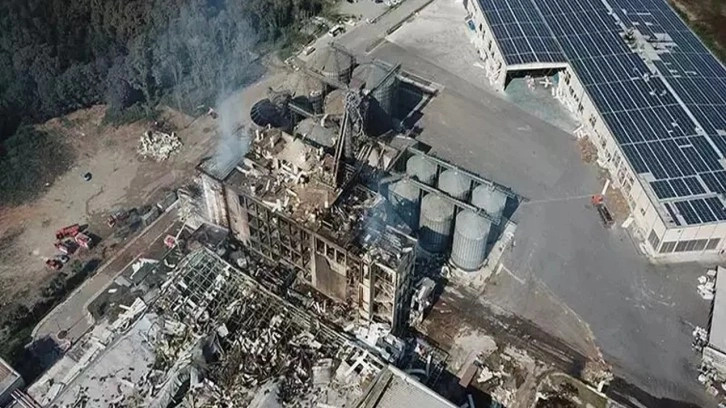 Patlamanın 2'nci gününde fabrikanın son hali havadan görüntülendi. Halen silolarından duman çıkan fabrikada ekiplerin soğutma çalışmaları sürüyor.