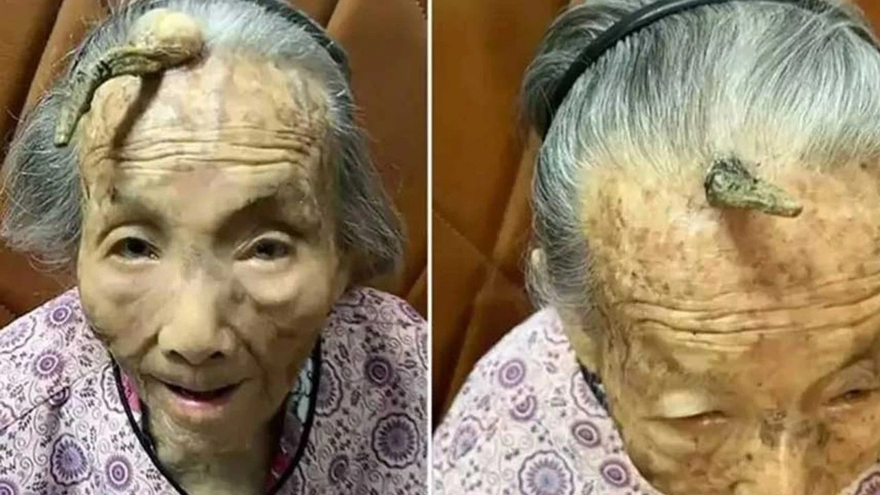 Sabah Gazetesi'nin haberine göre Çin'in Guangdong bölgesinde 107 yaşındaki bir kadın, alnında boynuza benzeyen 10 cm büyüme ile ünlü oldu.