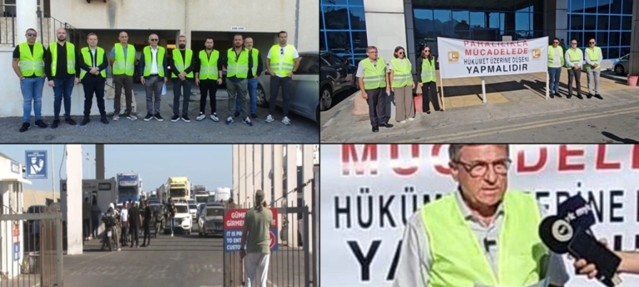 11 ekonomik örgüt, rekabet güçlerinin eridiği gerekçesiyle Lefkoşa, Gazimağusa ve Girne gümrüklerinde “gümrükten mal çekmeme” eylemi yaparak basın açıklamasında bulundu.
