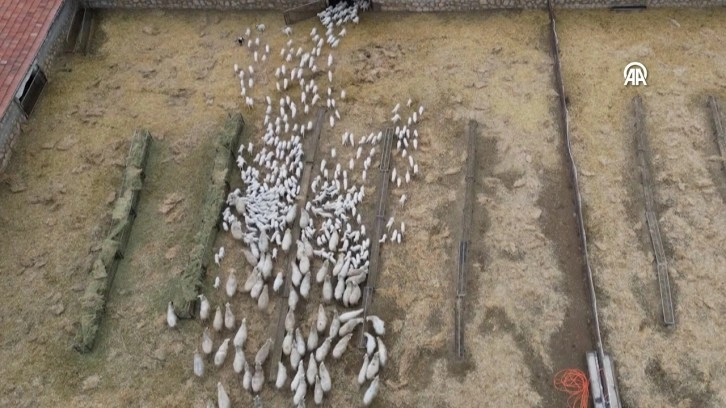 Doğum yapan ya da yapmak üzere olan koyunların özenle bakıldığı işletmedeki ağıllarda, dünyaya yeni gelen hayvanların sesleri yankılanıyor.