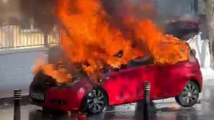 Vatandaşların ihbarıyla olay yerine itfaiye ekipleri sevk edildi; ancak alevler bir anda tüm aracı sardı.