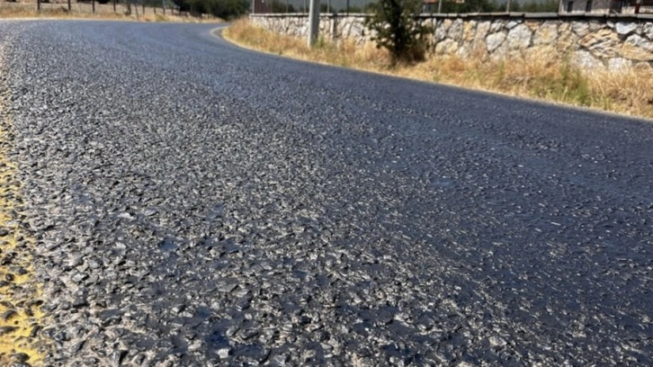Sıcak hava nedeniyle Etrim, Kumköy ve Pınarlıbelen Mahalleri arasında yollarda asfalt eridi.