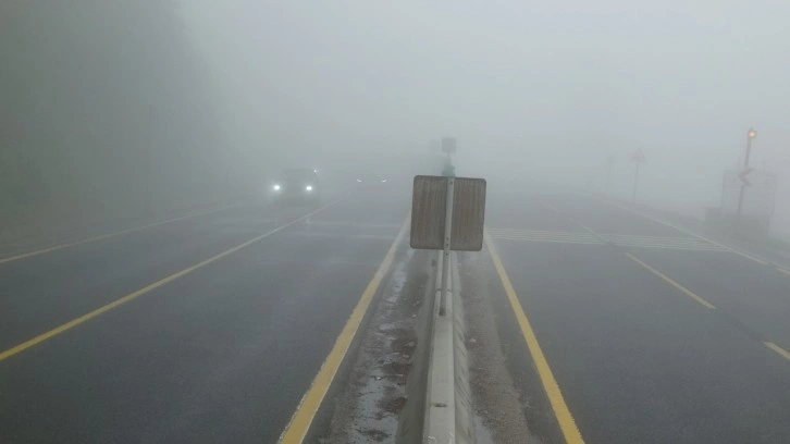 Sürücüler dik rampalı ve virajlı geçiş güzergahında sis nedeniyle yavaş ilerlemek zorunda kaldı.