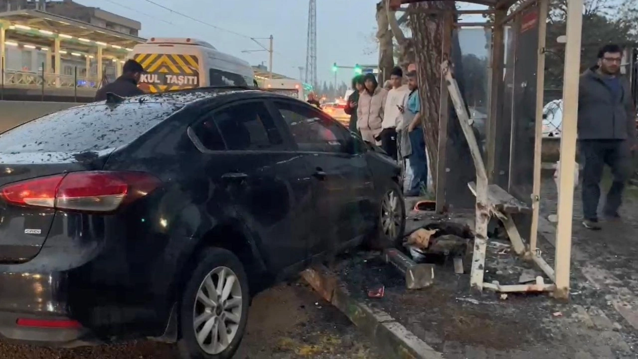 Yabancı uyruklu Alaa Kasaab yönetimindeki otomobil, sürücüsünün direksiyon kontrolünü yitirmesi sonucu otobüs durağına çarptı.