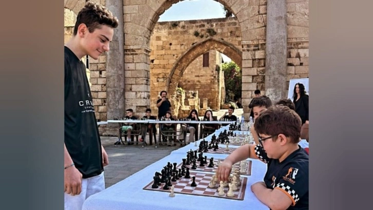 Grand Master Ediz Gürel, Gazimağusa Namık Kemal Meydanı’nda Cortado Sertbay Satranç Akademi sporcuları ile simultane satranç müsabakası yaptı.
