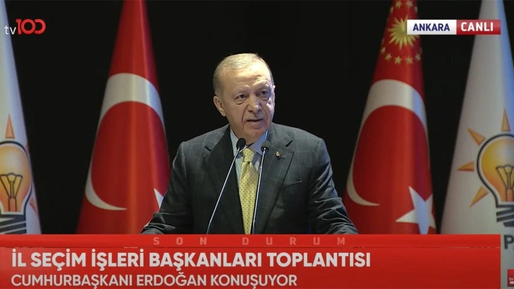 Cumhurbaşkanı Erdoğan, AK Parti Kongre Merkezi'nde partisinin Genişletilmiş İl Seçim İşleri Başkanları Toplantısı'nda konuşuyor.