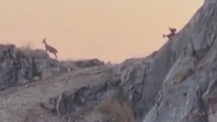 Bir süre kayalıklarda gezinen keçiler daha sonra gözden kayboldu.