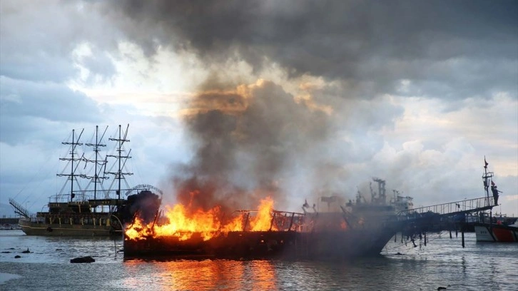 Alanya Balıkçı Barınağı'nda demirli bir tur teknesinde yangın çıktı. Alevler, barınaktaki başka bir tekneye daha sıçradı. İhbar üzerine bölgeye gelen sahil güvenlik ve itfaiye ekipleri, yangına müdahale ederek söndürdü.