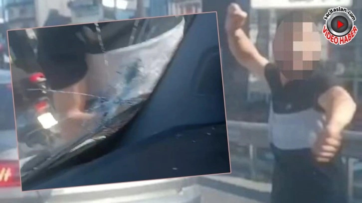 Otomobilin camının kırıldığı anlar sürücünün cep telefonu kamerasıyla görüntülendi.