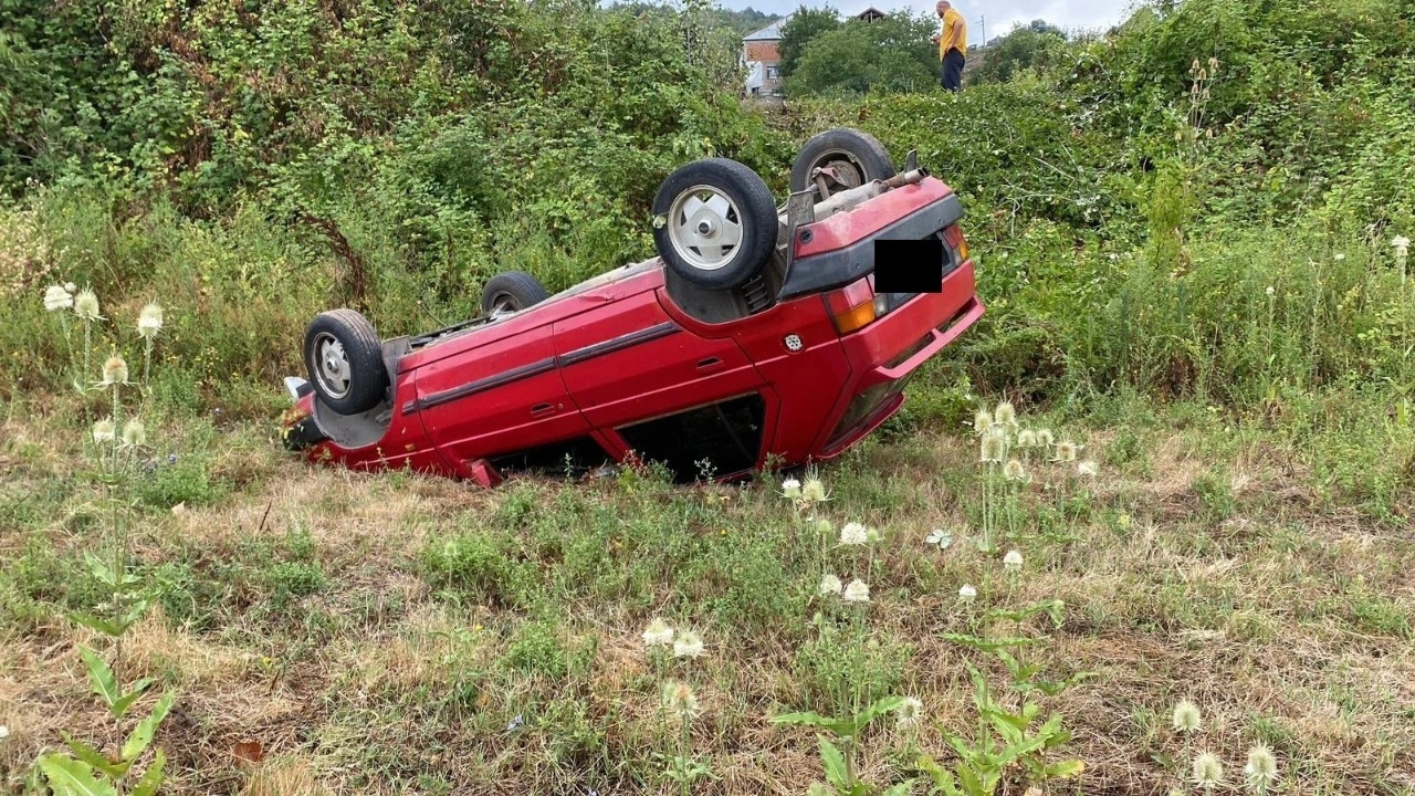 Kaza, dün saat 10.00 sıralarında Yuvacık Kanlıdere Caddesi'nde meydana geldi. N.B. idaresindeki otomobil, sürücüsünün direksiyon hakimiyetini kaybetmesi sonucu takla atarak yaklaşık 7 metreden bir evin yanındaki araziye devrildi.