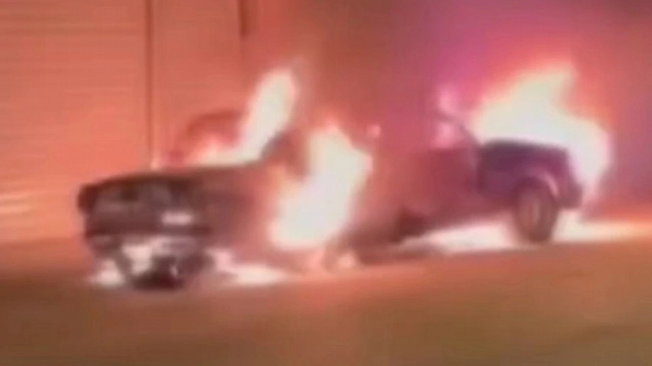 Görüntülerde, etrafı gözetleyen kapüşonlu şüphelinin yanıcı maddeyi atarak ilerlediği anlar yer aldı.