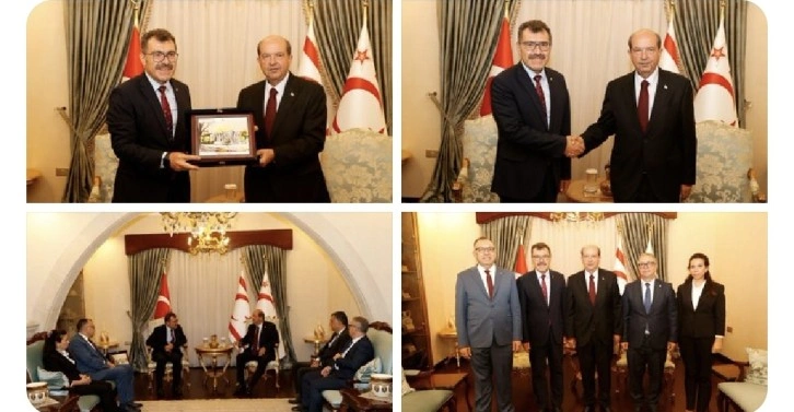 Cumhurbaşkanı Ersin Tatar, İstanbul Teknik Üniversitesi’nin yeni rektörü Prof. Dr. Hasan Mandal ve İTÜ KKTC Kampüsü Genel Sekreteri Dursun Koç’u kabul etti.