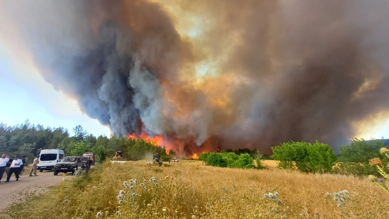 Rüzgarın etkisiyle büyüyen yangın nedeniyle bölgede yoğun duman oluştu. Ekiplerin yangını söndürme çalışmaları devam ediyor.